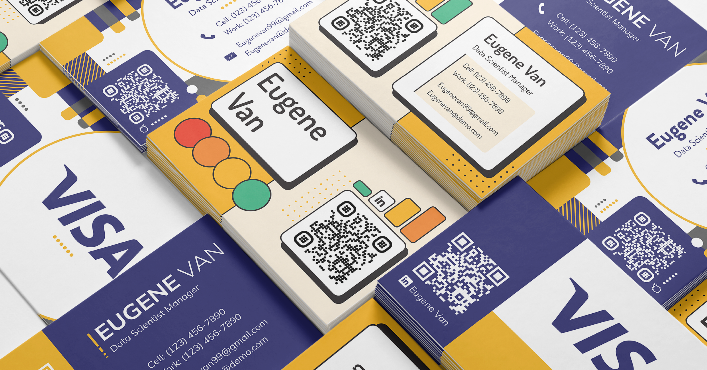 Each design required a name, job title, two phone numbers (work and personal,) two email addresses (work and personal,) and two QR codes.