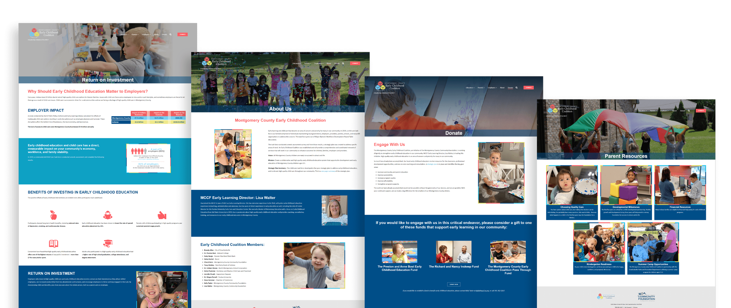 Montgomery County Community Foundation, a non-profit organization located in Indiana, was in need of a website redesign for their Early Childhood Coalition. This project took place before the redesign of their main website. While employed at Gravity Global, I led the web design portion of the project. The 20+ page website was built using the Zephyr CMS. The photography of the childhood coalition was provided by the client to use as we saw applicable.