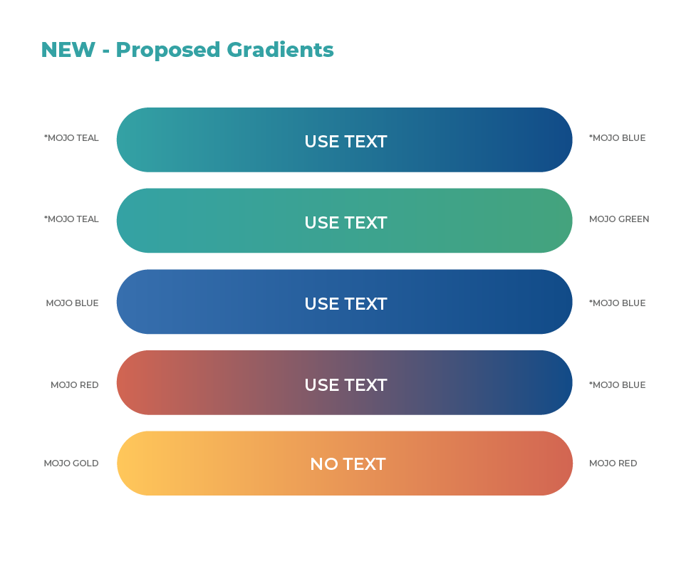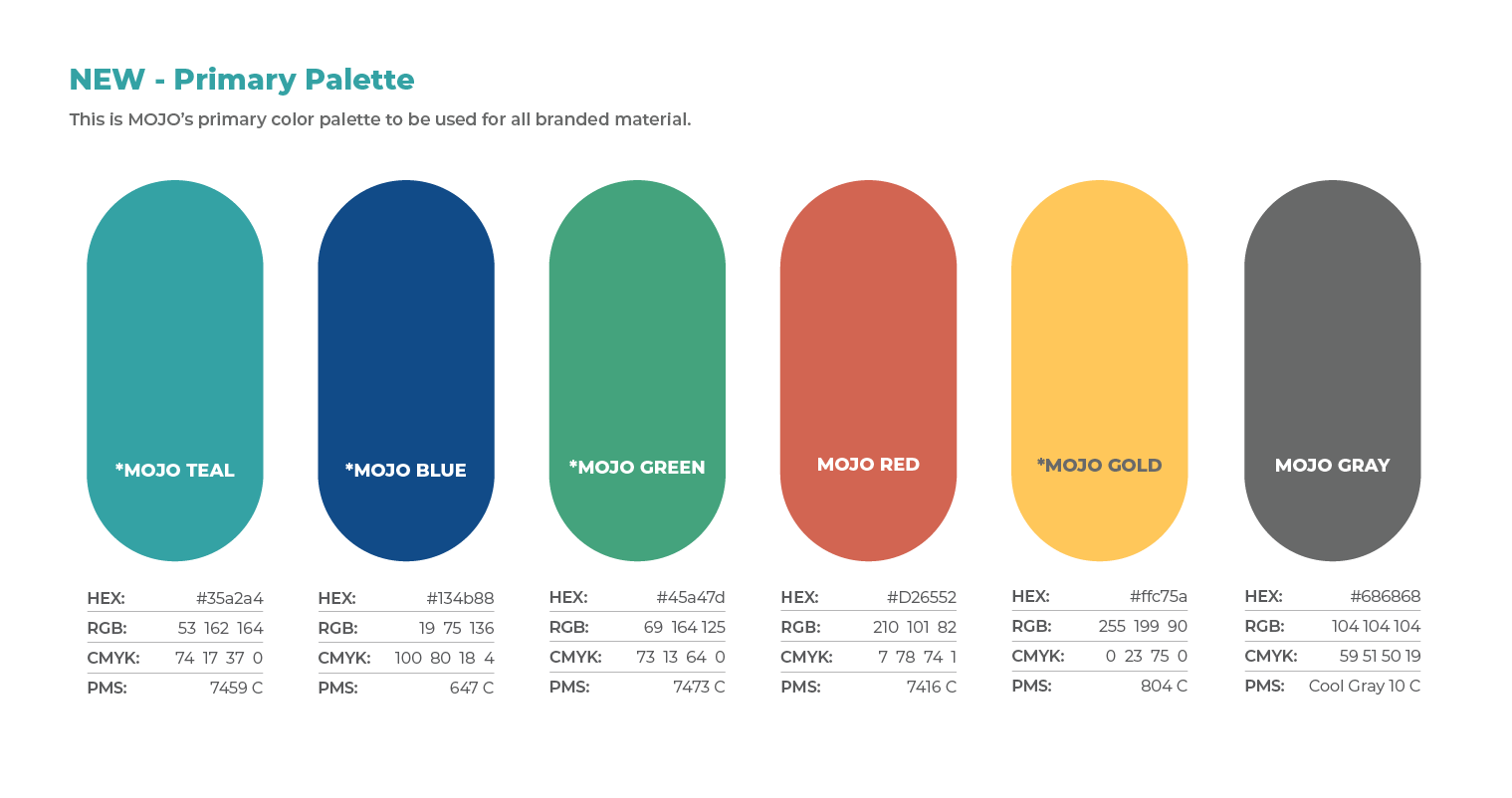 While employed at Mojo Media Labs, we identified that our brand palette was lacking a warm color to round out the friendliness our brand portrayed. I led the project to find a color to add a yellow color to add to our brand palette. This color was then incorporated into our internal marketing materials.